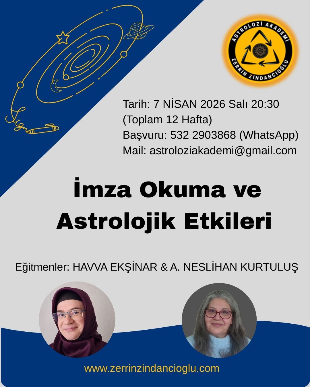 Gökyüzünün şifresi el yazınızda gizli! 86 milyar nöronun ve gezegen yerleşimlerinin imzanızdaki senkronizasyonunu çözmeye davetlisiniz. İlk kez GRAFOLOJİ, ASTROLOJİ teknikleriyle uygulanıyor.
